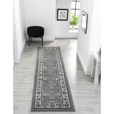 Obsidian Modern Low Pile Area Rug Polypropylene Weaving Jute Backing Floral Traditional Abstract Designs Rugs, Grey, 60x220 cm