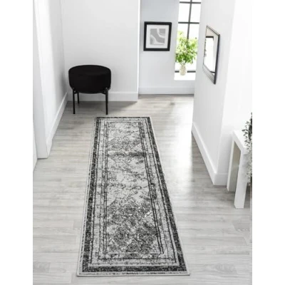 Obsidian Modern Low Pile Area Rug Polypropylene Weaving Jute Backing Floral Traditional Abstract Designs Rugs, Grey, 60x220 cm
