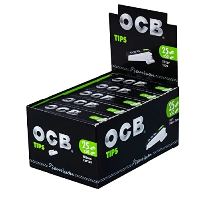 OCB filter tips, now with perforated triple-edge 25 Booklets each with 50 sheets Rolling paper size: 60 x 18 mm approx.