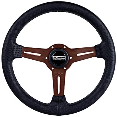GENERAL: OCC Motorsport racing steering wheel Classic model original and quality designed to provide great elegance to your car. This extra decoration will make your car look more attractive. It is a flat steering wheel with 6 bolt on grips MATERIAL AND COLOUR: Steering wheel with perforated leatherette finish to create a soft and comfortable feel when placing hands on the steering wheel. Black car steering wheel with black stitching. It has 3 bronze coloured aluminium arms. On the other hand, it is an anti-slip sports car steering wheel. This feature is essential for a better comfort, because your hands will not slip and you will get a better control while driving MEASUREMENTS: 350mm diameter steering wheel. It is the ideal size in steering wheels for cars, as it will help you to drive in a safer and more comfortable way. In addition, you will be able to make curves with much less effort. This racing steering wheel has a thickness of 34 mm: ideal for a more effective grip. It is a flat steering wheel INSTALLATION: Easy installation steering wheel, although a professional installation is recommended. Important: The steering wheel hub is needed for installation (it has to be used with a nardi steering wheel hub). This universal steering wheel can be put on most car models. In addition, it is a racing steering wheel popularly used for simulators. On the other hand, if you are planning to put this steering wheel in a street vehicle, you can only homologate it if the car has no airbag in the steering wheel. If your car does not carry airbag, you can homologate it without problem (to homologate you have to do laboratory project and reform to include it in technical record) REFERENCE: OCCVOL009