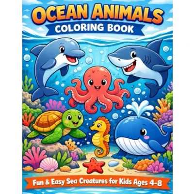 Ocean Animals Coloring Book: Fun & Easy Sea Creatures for Kids Ages 48