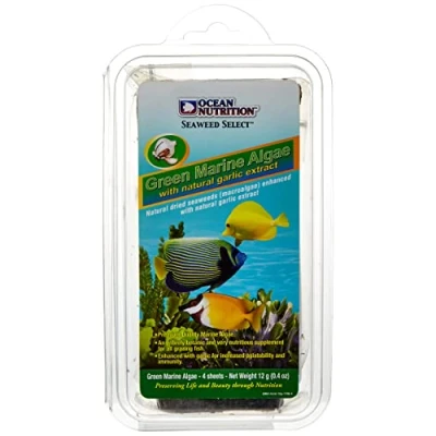 AmazonNutrient-rich food for algae grazing (herbivorous) marine fish Green seaweed is firmer than red ones and are often preferred by fish grazing on lawn algae Enriched with a natural garlic extract to attract fine eaters Feed with Ocean Nutrition's Feeding Frenzy Seaweed Clips Great for Tangs, Rabbitfish, Marine Angelfish, Invertebrates, Herbivorous Freshwater Fish and more