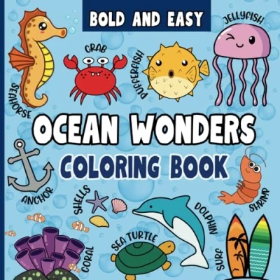 Ocean Wonders Coloring Book: 50 Bold and Easy Under the Sea Designs for Adults Kids Who Love Underwater Animals, Marine Life Beach Vibes (Bold Books)