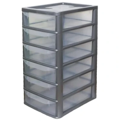 oceanevo® 6 Drawers Tier A4 Plastic Storage Tower Unit Organizer Home Office School Desktop Clear Chest for Clothes Toys Shoes Stationary (Grey)