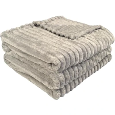 oceanevo Ribbed Cord Chunky Throw Fluffy Fleece Faux Fur Velvet Toch Plush Cozy Soft Blanket For Sofa Bed Settee Couch Chair (Silver/Grey, Double 150 X 200cm)