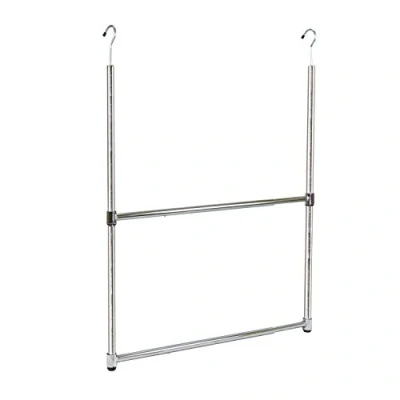 2 hangers to hang on any standard closet rod 2 horizontal rods which are both expandable and height adjustable in increments Reduces closet clutter Adds extra storage room when travelling Great for children's closet as the lower level is easily reachable for kids