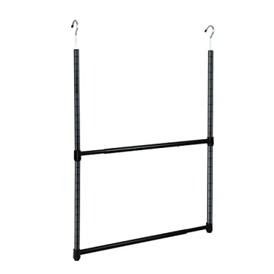 2 hangers to hang on any standard closet rod 2 horizontal rods which are both expandable and height adjustable in increments Reduces closet clutter Adds extra storage room when travelling Great for children's closet as the lower level is easily reachable for kids