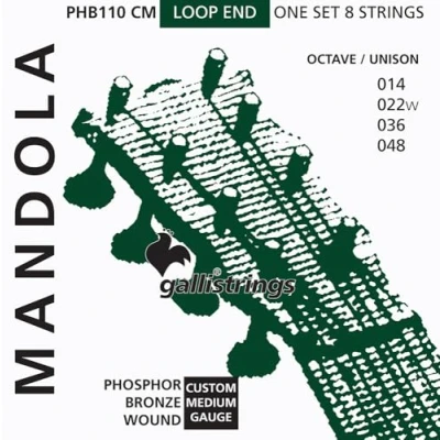 String gauges: .014 .022w .036 .048 Galli strings are manufactured of special steel and select materials. The outer winding is locked to the core by a special electro-magnetic process assuring brilliance and balanced tone.
