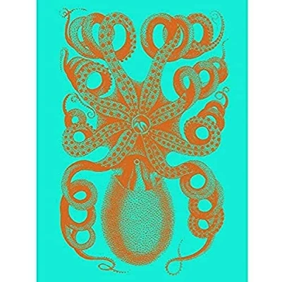 Octopus Orange Blue Illustration Unframed Art Print Poster Wall Decor 12x16 inch