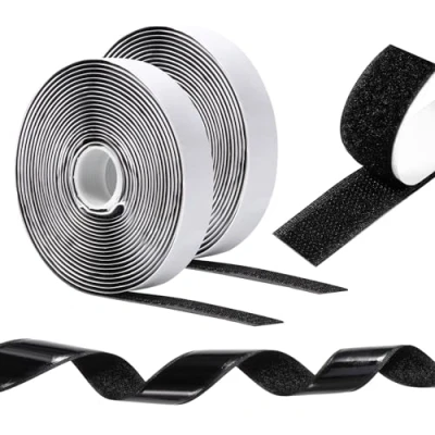 Nylon Material: Double-sided fabric tape hook loop adhesive strips are made of strong and durable nylon, not easy to break or peel. Nylon is a flexible and soft material that will not damage or scratch the surface STRONG & DURABLE CLOSURE - Double sided tape with hook and loop closure our double sided tape provides a secure attachment for your DIY projects and home repairs. Wait 24 hours before use Multiple Uses: Suitable for smooth surfaces such as walls and glass, but not for fabrics or dusty surfaces. Adhesive hook loop fabrics to organize and protect items in your home, such as remote controls, carpets, pillows, curtains, pictures, mirrors, etc No Drilling Required: Self-adhesive scraper rollers apply quickly, easily and cleanly without drilling. The loop side is delicate, while the hook side is sturdy, offering a durable and firm grip Kit Contents: The kit contains a roll of ring tape and a roll of tape with hooks, each roll is 20mm wide and 5m long.Users can easily cut them into smaller sizes to suit different scenarios