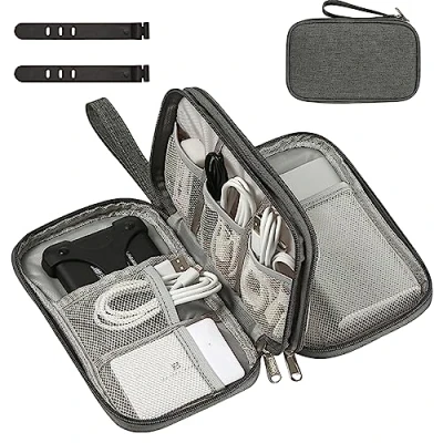 Compact & Practical Design – This cable organiser bag measures 8.3 x 5.1 x 1.9 inches, offering a sleek and space-saving solution to keep your electronics essentials neatly arranged. Ideal for daily use or business trips. Durable & Waterproof Material – Crafted from high-quality waterproof fabric, pearl cotton, and nylon, this travel organiser provides excellent protection for cables, power banks, hard drives, and mobile accessories. Double Layer Design – Electronic bag adopts the design of a two-layer accessory bag, one compartment Contains 3 x pockets large, 5 x mesh pockets small, you can find your items in less than a second. Perfect for Travel – Lightweight and easy to carry, this cable organiser bag fits effortlessly into backpacks, suitcases, or handbags, making it the perfect travel organiser for vacations, work trips, or outdoor adventures. Stylish & Available in Multiple Colors – Choose from Black, Grey, or Blue to match your style. Whether for home use or travel, this travel organiser ensures your tech gear is always organized and accessible.