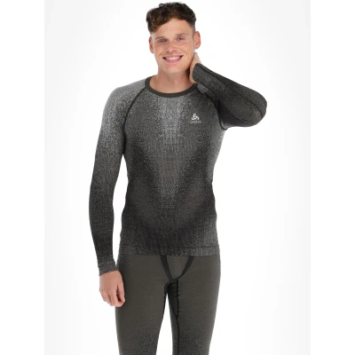 Odlo BL Top Crew Neck L/S Performance Warm Blackcomb. A men’s thermal shirt designed as a close-fitting base layer for alpine use, with a crew neck and long sleeves for full coverage. Constructed with seamless knitting to minimise chafe and reduce bulk under a midlayer or shell, this top sits close to the skin to optimise moisture transport and body heat retention. The fabric blend combines recycled polyamide, recycled polyester and recycled elastane, giving stretch for unrestricted movement and a snug fit that follows the contours of the body. Rated warmth level 3, medium warm, the Blackcomb Performance Warm sits between lightweight baselayers and heavy insulation, making it suitable for sustained activity in cool to cold conditions. The material is breathable and moves perspiration away from the skin, helping to regulate temperature during high-output skiing or hill sessions. Additional functional benefits include odour control technology, which helps maintain freshness during multi-day use, and an alpine-oriented cut that favours mobility on the slopes. The sizing is normal, with a tight fit in wear, so order your usual size for a close next-to-skin layer. This thermal top combines practical performance features with recycled materials, making it a sensible choice for skiers and winter sports enthusiasts seeking a reliable, medium-warm base layer.