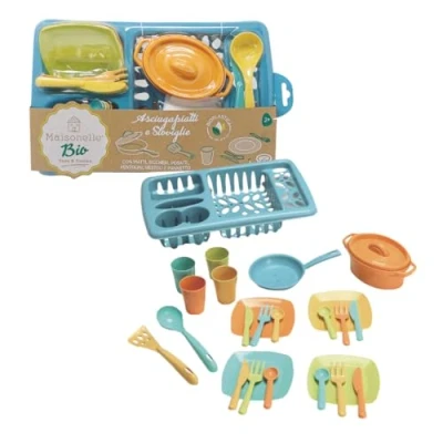 DRYER AND Crockery Set: Maisonelle Bio children's kitchen set with dish towel with tableware, offers children a realistic role-playing experience, stimulating their imagination and encouraging creative play. CREATIVE AND INTERACTIVE PLAY: Thanks to the quality and safety of the material used, children can immerse themselves in an engaging role-playing game, creating their own stories and interacting with accessories in a safe and fun way. Box contents: the set includes dish towels and tableware to enrich play and expand children's creativity. Suitable for children over 3 years old. ECO-SUSTAINABLE GIFT IDEA: This kids kitchen accessories set provides an immersive experience that stimulates the senses and promotes children's sensory development, while its reduced ecological footprint makes it a conscious gift. Made from bioplastic. MAISONELLE - Growing up playing: The home and kitchen line that has conquered many young aspiring chefs thanks to the quality and the unmistakable country chic style., Manufacturer: ODS