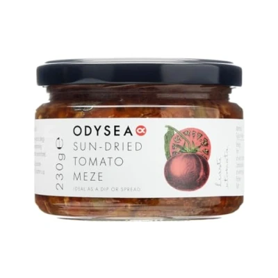 Chopped sun dried tomatoes, olives, garlic, capers and extra virgin olive oil Made from an authentic mediterranean recipe Ideal as an appetiser or topping A versatile meze ideal on crusty bread or as a dip Suitable for vegan