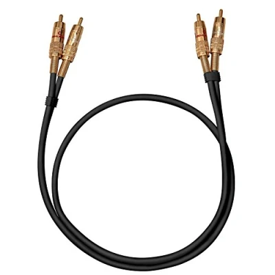 Analogue audio RCA cable with coaxial structure; Great for wiring of HiFi or Home Cinema systems 24 ct. gold-plated contacts and effective 2-way shielding for optimum signal transfer; inner conductor, oxygen-free copper Highly flexible cable with robust plastic casing and solid full metal connectors