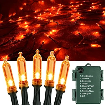 š”ćOrange Lights Halloweenć A set of 12 meters (40 feet), 120 leds in orange; Also perfect for christmas, Thanksgiving Day, Halloween, Autumn theme party, fall wedding birthday festive decor. Halloween string lights perfect for halloween garland, fall garland, autumn home decor, halloween door decorations, autumn decorations outdoor š”ćHalloween Lights Outdoor Waterproof IP43ćHalloween lights battery operated - 3 AA Batteries Required for each string lights (Not Included); With upgraded waterproof battery case, can withstand all kind of weather, including heavy rain and snow. with hanging holes, you can easily hang or put the lights anywhere you like, ideal for outdoor indoor garden light up halloween decorations outdoor lights. āļøćSafe and StablećThe string lights powered by 4.5V low voltage, won't get hot at all, stay cool to the touch so it is safe for children and pets, and you can also use these fairy lights next to fabrics, furnishings, christmas tree or on the roof, christmas home decorations net lights š”ć8 Lighting ModesćThis halloween fairy lights has 8 lighting modes to satisfy your diverse needs (Combination, In waves, Sequential, Slow Glow, Chasing/Flash, Slow fade, Twinkle/Flash, Steady on). You can adjust the lighting modes by pressing the round button on the battery box. š”ćPortable and ApplicablećPowered by battery, no power troubles, very suitable for small outdoor scenes, easy to carry; It is long and bright enough to be used as lighting for any occasion and all year round! Perfect for both indoors and outdoors, such as garden, bedroom, kitchen, patio, wedding, party or any festival decoration. It's romantic and pleasant for you.