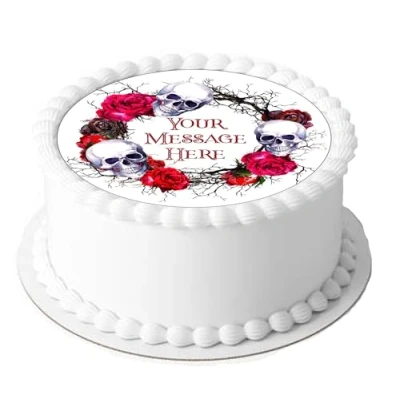 Oeowin Dartmouth LTD A4 Edible Decor Icing Sheet PERSONALISED Halloween Skull Rose 7 8" Circle Cake Topper Decoration Great for larger cakes L