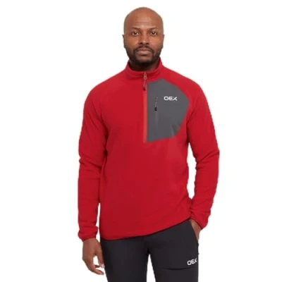 OEX Men’s Braewick Half Zip Fleece with 100% Recycled Fabric & Zipped Chest Pocket, Soft, Lightweight Active FitTechnical Midlayer Pullover (UK, Alpha, XXL, Regular, Red)