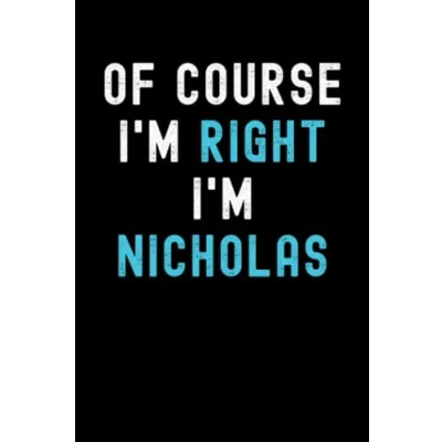 Of Course I'm Right Nicholas: Custom Journal Notebook, Best Personalized Gift Idea For Nicholas , Funny First Name Saying Make A Great ... Inches With 120 Pages Glossy Finish Cover