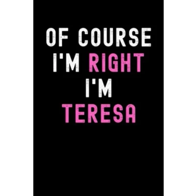 Of Course I'm Right Teresa: Custom Journal Notebook, Best Personalized Gift Idea For Teresa , Funny First Name Saying Make A Great ... Inches With 120 Pages Glossy Finish Cover