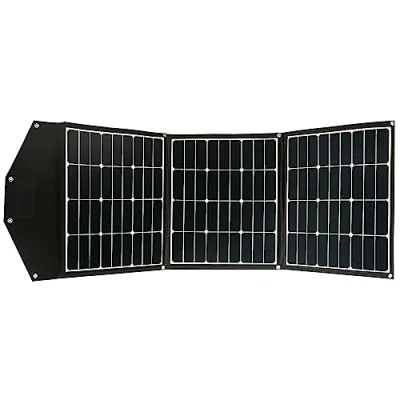 Particularly compact dimensions: 560 x 440 x 20 mm when folded and therefore ideal for storing – with a weight of 5,1 kg super portable and can be used almost anywhere. The material of the soalrbag is waterproof. Quick to assemble and disassemble: thanks to three integrated feet on the module, it can be assembled and dismantled within a few moments - the charge controller (not included) can also be fixed (e.g. in the caravan), as this is connected to the panel with a separate plug connection (approx. 6 m connection cable module to controller) --- Dimensions when open: 560 x 1320 x 7 mm.