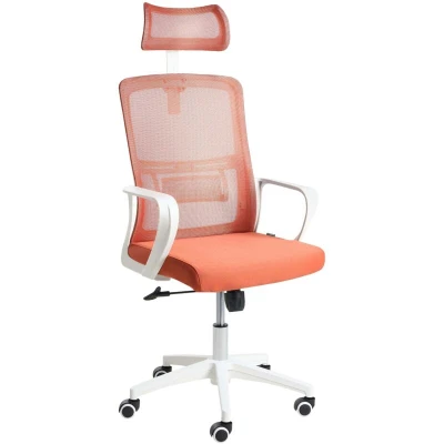 Stylish Office Chair with a Headrest. This multifunctional office chair is a great choice for any modern home office. Featuring breathable mesh upholstery, it includes a comfortable headrest and armrests for a more pleasant work experience. The 360-degree swivel base ensures smooth movement, while the tilting backrest offers excellent back support after hours of work. Its stylish design seamlessly fits into various interiors. Details: Product Type: Office Chair General Color: Red, White Shade: Coral Material Type: Fabric Main Material: Mesh Additional Material: Plywood Legs material: Synthetic Material Seat Material: Fabric 360 Swivel: Yes Adjustable Parts: Headrest Armrests: Yes Finish: Powder Coated Leg Caps/ Pads: Yes Tilting: Yes Dimensions: Armrests Height: 19 cm Depth: 62 cm Seat Height: 35-45 cm Width: 46 cm Height: 110-120 cm Seating Surface: 45x52 cm Weight: 11 kg Weight Capacity: 150 kg Offer Includes: 1 x Office Chair Key Features: 360° Swivel, Pneumatic Seat Height