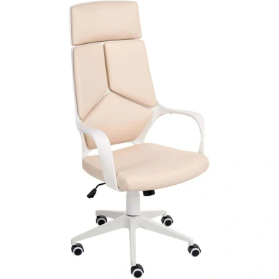 General description The DELIGHT Office Chair in Light Beige faux leather combines ergonomic design with contemporary style, making it a chic and comfortable addition to any study or home office. The chair features a tilting backrest and adjustable seat height, allowing for personalized comfort. Its high back with a headrest promotes healthy posture during extended periods of sitting. Upholstered in soft, easy-to-clean faux leather, this chair is both sleek and comfortable. Technical specifications Product Type: Office Chair Style: Minimalist General Color: Light Beige Main Material: Faux Leather (100% PVC Leather) Legs Material: Synthetic Material Seat Material: Faux Leather Dimensions: Armrests Height: 20 cm, Depth: 64 cm, Seat Height: 42-52 cm, Width: 64 cm, Height: 116-126 cm, Seating Surface: 52x48 cm Weight: 13 kg Weight Capacity: 120 kg Features: 360° Swivel, Smooth Rolling Castors, Pneumatic Seat Height Adjustment, Safety Brake Function Installation Full assembly required