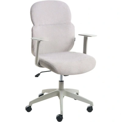 Office Desk Chair with Adjustable Heigfht. This beautifully designed office chair combines style and comfort with its soft fabric upholstery in a light grey shade that complements any workspace. The generously padded seat and backrest create a cosy, inviting feel that makes long working hours much more pleasant. The adjustable seat height allows for finding the perfect position, while the tilting mechanism enables leaning back and relaxing. The gentle curves and plush texture give this chair a modern, homely look that's just as suited to a home office space. Details: Product Type: Office Chair Style: Scandinavian General Color: Grey, White Shade: Off-White Material Type: Fabric Main Material: Fabric Additional Material: Plywood Legs material: Synthetic Material Seat Material: Fabric Material Composition: 100% Polyester 360 Swivel: Yes Adjustable Parts: Seat Height Armrests: Yes Leg Caps/ Pads: No Tilting: Yes Dimensions: Armrests Height: 17 cm Depth: 60 cm Seat Height: 34-42 cm Width:
