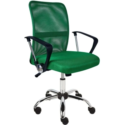 General description A modern office chair designed to enhance comfort while working and studying. The backrest, curved into a natural arc, promotes proper posture during extended seating. The height adjustment feature ensures compatibility with various tables or desks, while the mesh upholstery provides excellent air circulation, beautifully complemented by the silver metal frame and smooth-rolling wheels. Technical specifications Product Type: Office Chair Style: Minimalist General Color: Green, Silver, Black Main Material: Mesh Additional Material: Iron Legs Material: Metal Seat Material: Fabric Material Composition: 100% Polyester Dimensions: Depth: 55 cm, Width: 55 cm, Height: 94-104 cm, Seat Height: 46-56 cm, Seating Surface: 47x48 cm Weight: 9 kg Weight Capacity: 120 kg 360° Swivel: Yes Adjustable Parts: Seat Height, Armrests: Yes No Tilting: No Installation Partial Assembly Required Estimated Assembly Time: 20-40 minutes Usage To ensure stability and safety, check the assembly