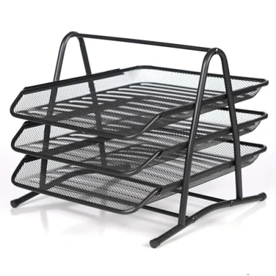 Office Desk Filing Trays Stackable Letter Tray Organiser for A4 Documents, Paper Holder 3 Tier Mesh Metal Black