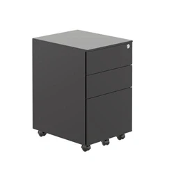 A mobile 3 drawer steel under-desk pedestal. Filing drawer for foolscap or A4 suspension files. Lockable drawers. Discreet side handle drawers. Smooth Accurize drawer handles.