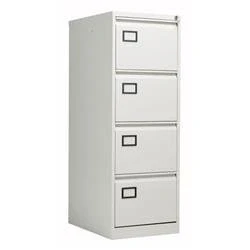 EurofficeBisley contract filing cabinet. Goose grey steel. 4 drawers. Fitted with recess handles, drawer label holders, central locking and anti-tilt safety device. Each drawer will take 35kg of suspension files.