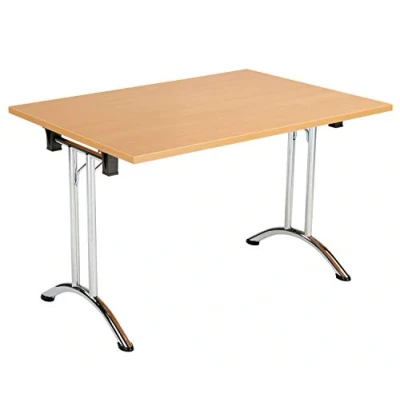 Office Hippo Folding Table, Sturdy & Stylish Computer Table Desk, Work For Home Office, Versatile Foldable Meeting Room or Boardroom, 5 Year Guarantee Beech / Chrome