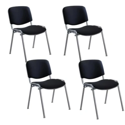 Office Hippo Heavy Duty Meeting Chair, Versatile & Robust Stackable Reception or Conference Chair With Strong Frame Padded Durable Seat, Up To 115kg Weight Black/Black, 4 Pack