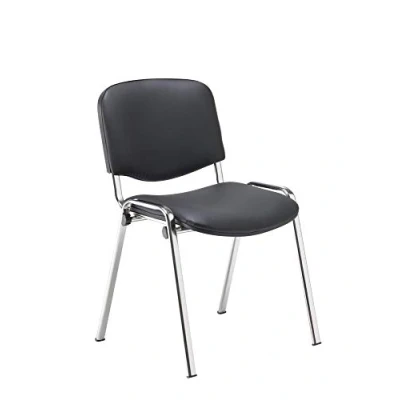 Office Hippo Heavy Duty Meeting Chair Versatile & Robust Stackable Reception Seating for or Conference Strong Frame Padded Durable Seat, Up To 115kg Weight PU Black/Chrome, Single
