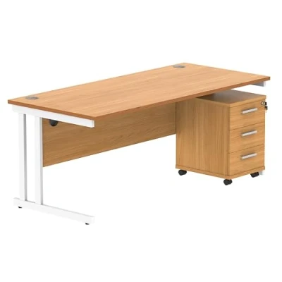 Office Hippo Heavy Duty Rectangular Desk, 3 Drawer Mobile Pedestal, White Frame, Norwegian Beech, 180 x 80 73 cm