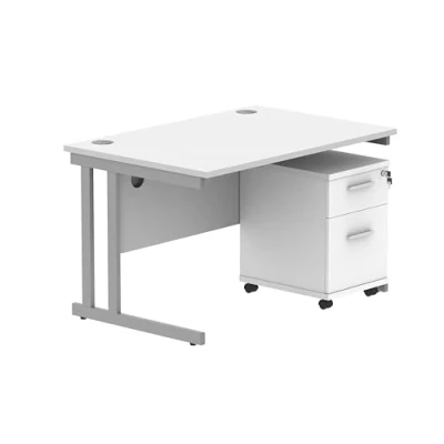 HOME OFFICE DESK & CABINET: The Office Hippo computer desk features a robust cantilever frame with sleek white top plus a versatile lockable mobile filing cabinet. The rectangular desk with storage drawers is modern and smart. Part of the Essentials Range of office furniture certified for both commerical and domestic use for value conscious customers INTERGRATED CABLE PORT: The Office Hippo rectangular shaped office desk comes with a cable port to help keep your cables neatly stored, paired with modesty panels your cables will be hidden and out of sight, Perfect for commercial offices where working across desks to allow for more tidy and clean desks. You can also use it at home as a gaming desk to organise your wires. ROBUST DESK & VERSATILE STORAGE: The cantilever desk features metal to metal fixings that are paired with a protective edge banding and a 2.5 cm thick top. Resistant to heat and staining this Office Hippo desktop table is truly a work friendly surface. The lockable mobile filing cabinet has three general storage drawers to help keep your office tidy HEAVY DUTY COMPUTER TABLE & CABINET: Made from high quality long long-lasting durable materials, this range is designed with quality and simplicity at its core with an 80kg maximum weight load. With a 5 year warranty/guarantee the durable Office Hippo desk set is built to last. Desk measurements are 120cm Width x 80cm Depth x 73cm Height, and the mobile cabinet is 40.4cm Width x 50 cm Depth x 59.5 cm Height MAKE YOUR OFFICE WORK: Discover an office furniture range that makes your space comfortable and work-friendly. Choose from different styles of executive office desks, filing cabinets, pedestals for storage, and seating for all your office rooms. Office Hippo provides you with comfort, whether you work in the office or at home. Bring your vision to life with Office Hippo's modern office collections