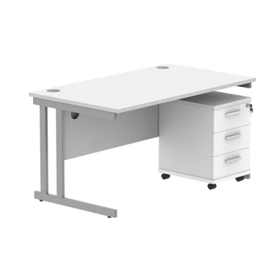 HOME OFFICE DESK & CABINET: The Office Hippo computer desk features a robust cantilever frame with sleek white top plus a versatile lockable mobile filing cabinet. The rectangular desk with storage drawers is modern and smart. Part of the Essentials Range of office furniture certified for both commerical and domestic use for value conscious customers INTERGRATED CABLE PORT: The Office Hippo rectangular shaped office desk comes with a cable port to help keep your cables neatly stored, paired with modesty panels your cables will be hidden and out of sight, Perfect for commercial offices where working across desks to allow for more tidy and clean desks. You can also use it at home as a gaming desk to organise your wires. ROBUST DESK & VERSATILE STORAGE: The cantilever desk features metal to metal fixings that are paired with a protective edge banding and a 2.5 cm thick top. Resistant to heat and staining this Office Hippo desktop table is truly a work friendly surface. The lockable mobile filing cabinet has three general storage drawers to help keep your office tidy HEAVY DUTY COMPUTER TABLE & CABINET: Made from high quality long long-lasting durable materials, this range is designed with quality and simplicity at its core with an 80kg maximum weight load. With a 5 year warranty/guarantee the durable Office Hippo desk set is built to last. Desk measurements are 140cm Width x 80cm Depth x 73cm Height, and the mobile cabinet is 40.4cm Width x 50 cm Depth x 59.5 cm Height MAKE YOUR OFFICE WORK: Discover an office furniture range that makes your space comfortable and work-friendly. Choose from different styles of executive office desks, filing cabinets, pedestals for storage, and seating for all your office rooms. Office Hippo provides you with comfort, whether you work in the office or at home. Bring your vision to life with Office Hippo's modern office collections