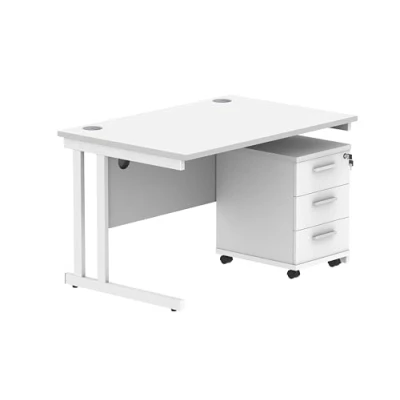 HOME OFFICE DESK & CABINET: The Office Hippo computer desk features a robust cantilever frame with sleek white top plus a versatile lockable mobile filing cabinet. The rectangular desk with storage drawers is modern and smart. Part of the Essentials Range of office furniture certified for both commerical and domestic use for value conscious customers INTERGRATED CABLE PORT: The Office Hippo rectangular shaped office desk comes with a cable port to help keep your cables neatly stored, paired with modesty panels your cables will be hidden and out of sight, Perfect for commercial offices where working across desks to allow for more tidy and clean desks. You can also use it at home as a gaming desk to organise your wires. ROBUST DESK & VERSATILE STORAGE: The cantilever desk features metal to metal fixings that are paired with a protective edge banding and a 2.5 cm thick top. Resistant to heat and staining this Office Hippo desktop table is truly a work friendly surface. The lockable mobile filing cabinet has three general storage drawers to help keep your office tidy HEAVY DUTY COMPUTER TABLE & CABINET: Made from high quality long long-lasting durable materials, this range is designed with quality and simplicity at its core with an 80kg maximum weight load. With a 5 year warranty/guarantee the durable Office Hippo desk set is built to last. Desk measurements are 120cm Width x 80cm Depth x 73cm Height, and the mobile cabinet is 40.4cm Width x 50 cm Depth x 59.5 cm Height MAKE YOUR OFFICE WORK: Discover an office furniture range that makes your space comfortable and work-friendly. Choose from different styles of executive office desks, filing cabinets, pedestals for storage, and seating for all your office rooms. Office Hippo provides you with comfort, whether you work in the office or at home. Bring your vision to life with Office Hippo's modern office collections