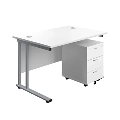 Office Hippo Professional Cantilever Desk With 3 Drawer Mobile Pedestal, Wood, White, Silver Frame, 120 x 80 73 cm