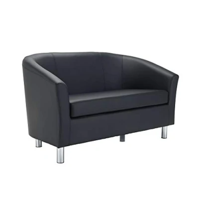 Classic tub double seater sofa in 11 contemporary colours, generously upholstered in soft touch PU leather Sculpted back with stitching detail for added interest Available with either contemporary chrome or natural wood feet 5 years component and 2 years upholstery guarantee; designed for users up to 230 kg; UK FR foam Overall dimensions (W x D x H): 127 x 73 x 64 cm; seat height: 42 cm