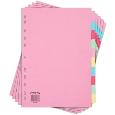 Officely 10 Part File Subject Dividers Punched Assorted Colours and Tabs (Pack of 5)