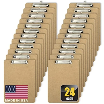 24 pack of item 83219 Hardboard made from 100% recycled/recovered wood fibers, Eco-Certified Strong, low profile clip Customer may receive clipboard with the original smoothed edges or new unsmoothed edges Proudly made in the USA