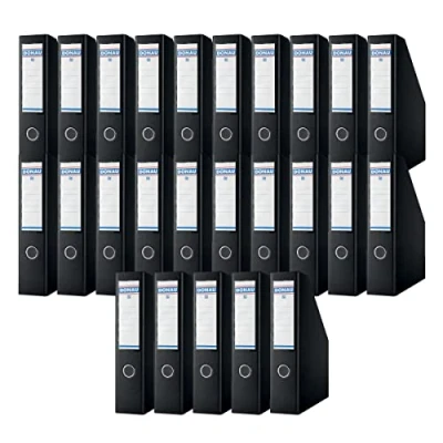Donau 3949001PL-01 magazine file made of cardboard/cardboard. Plastic cover PP/paper with the structure of a linen cloth. Made from 2.1mm thick cardboard. Inside the colour is white. Pack of 25 / 25 pieces. Spine width: 75 mm. Dimensions: 75 x 320 x 245 mm. Colour: black. For office and school. Archiving of magazines. Plastic cover PP/paper with the structure of a linen cloth Reinforced finger hole Capacity: up to 750 sheets, gram weight 80 GSM. Interchangeable spine label. With the green dot - participation in the recycling and recycling system resulting from the provisions of Polish and EU law