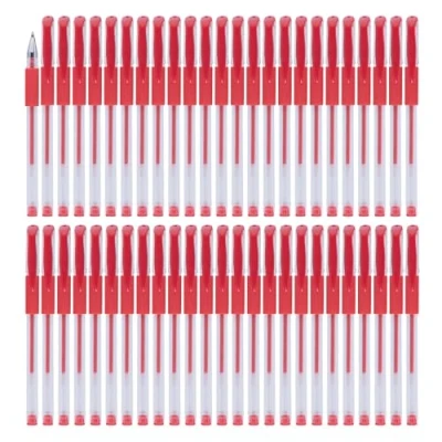 OFFICER PRODUCTS Gel Ballpoint Pen, Pack of 50, Colour: Red, Ball Diameter: 0.5 mm, Pens, Waterproof and Non Fading Ink, Rubber Grip