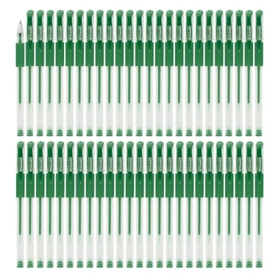 OFFICER PRODUCTS Gel Ballpoint Pen, Pack of 50, Ink Colour: Green, Ball Diameter: 0.5 mm, Pens, Waterproof and Non Fading Ink, Rubber Grip