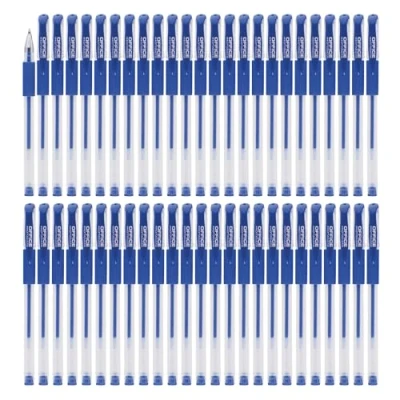 OFFICER PRODUCTS Gel Ballpoint Pens, Pens Stationery, Pack of 50, Colour: Blue, Ball Diameter: 0.5 mm, Waterproof and Non Fading Ink, Rubber Grip