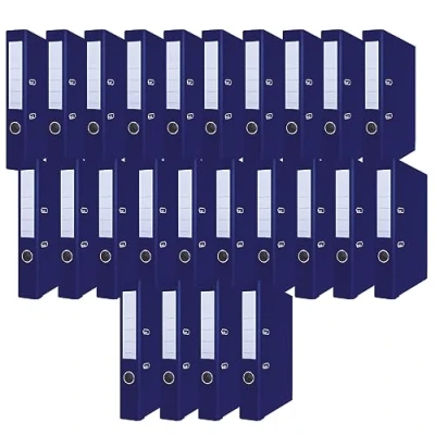 OFFICER PRODUCTS Pack of 24 folders, Dark Blue, DIN A4/50 mm, Paper Cardboard/Plastic Cover, PP Slotted Folder, Office Metal Edge Protection