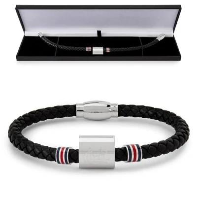 Official Licensed Glasgow Rangers FC Product- featuring the club's crest elegantly engraved on the stainless steel centrepiece, a must-have for any true supporter. Stylish and Modern Design: Features a trendy black braided leather strap paired with a sleek stainless steel plate, accented by eye-catching red, white, and blue stripe rings on either side for a distinctive look. Secure and Comfortable Fit: Designed with a strong, reliable magnetic clasp for easy, secure fastening and a comfortable fit, with a total length of 210mm. Ready for Gifting: Comes complete in a stylish presentation gift box, making it an ideal, high-quality present for birthdays, Christmas, or any special occasion for a Rangers fan.