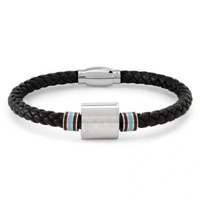 Official Club Merchandise West Ham United FC Bracelet, Stainless Steel and Leather with Coloured Rings, Hammers Gift